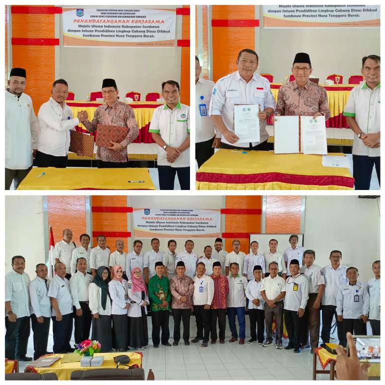 ProSumbawa SUMBAWA BESAR, samawarea.com (31 Januari 2024) – Sebanyak 32 SMA/SMK se-Kabupaten Sumbawa menjalin kerjasama dengan Majelis Ulama Indonesia (MUI), Rabu (31/1/2024). Hal ini dibuktikan dengan penandatanganan kerjasama oleh Ketua MUI Sumbawa, Syukri Rahmat S.Ag., M.M.Inov dengan Kepala Cabang Dikbud Sumbawa Provinsi NTB, Nasrullah Darwis, M.Pd., dan sejumlah kepala sekolah.